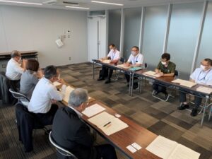 続いて、こども福祉課のみなさんと協議。垣野内課長以下4人の方に対応していただきました。ここでは、保育施設が臨時休園した時の子どもたちを預ける場所の問題が話題に。「子どもたちを見守ってくれる施設の設置基準、配置基準の特例について、県下統一の見解を示してほしい」という要望が出されました。子どもを預けたい人と預かってもよい人が登録し、マッチングを行うファミリーサポートセンターが設置されていますが、多くの子の保育はできないという課題もあります。また、臨時強雨付近など母子家庭の方が父子家庭より給付申請の比率は高く、やはり母子家庭の方が経済的に厳しい立場にあることを再認識させられました。