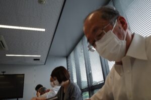 接種率は11月には目標に到達するとの見通し。予約コールセンター及びネット予約は市独自で、熊本市の事業者に委託したそうです。ほとんどがかかりつけ医での接種だが、スピードを上げるため集団接種会場を2か所設置。訪問接種も実施(ただ、ファイザー製は扱いが難しい)。現在ロスは1本もないとのことでした。
