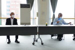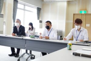 調査の2回めは佐伯市。加藤健康増進課長をはじめワクチン接種を担当する福祉保健部ワクチン接種班の方々にお話を伺いました。今回は、御手洗・上田両佐伯市議に同行していただきました。